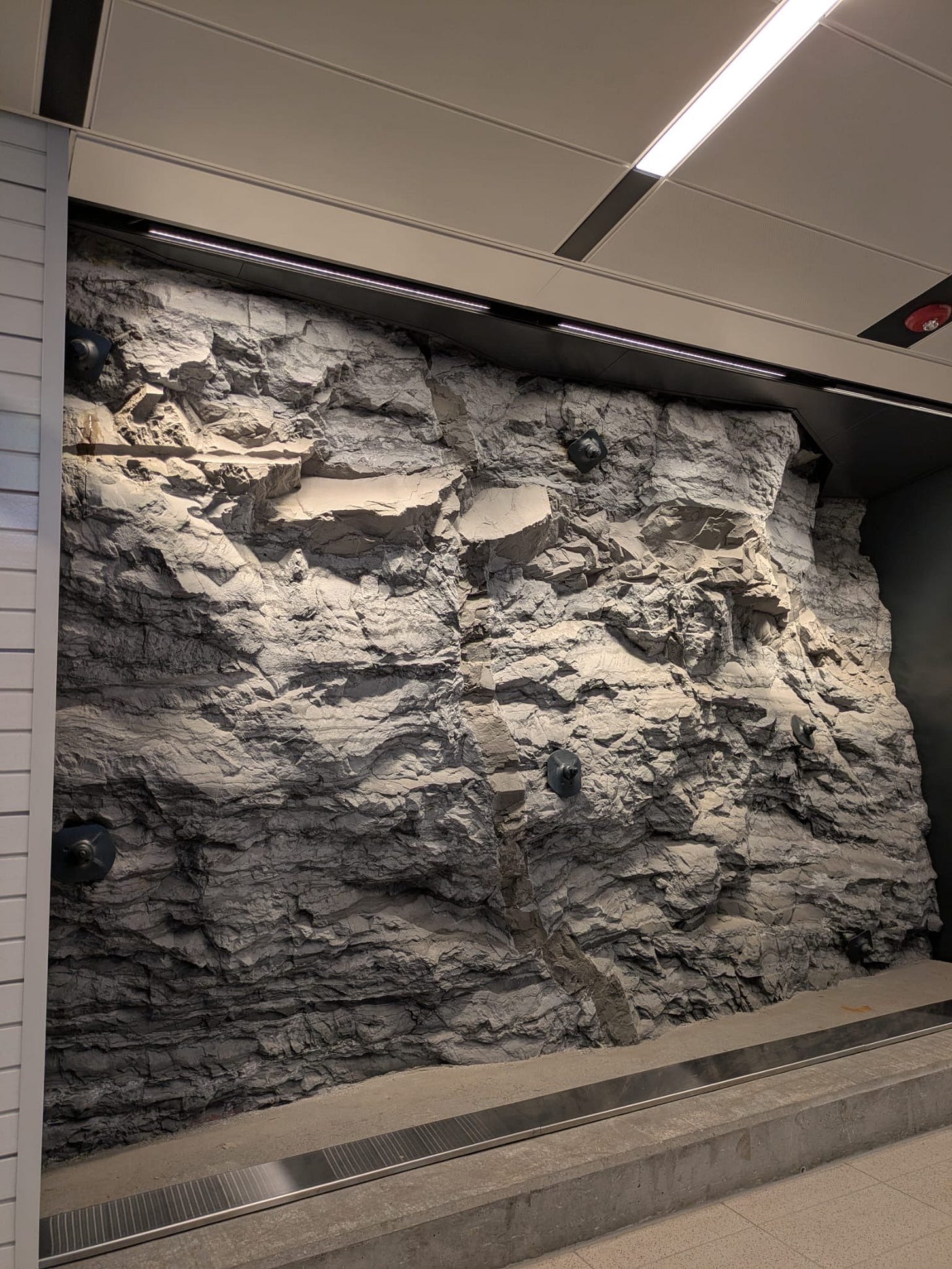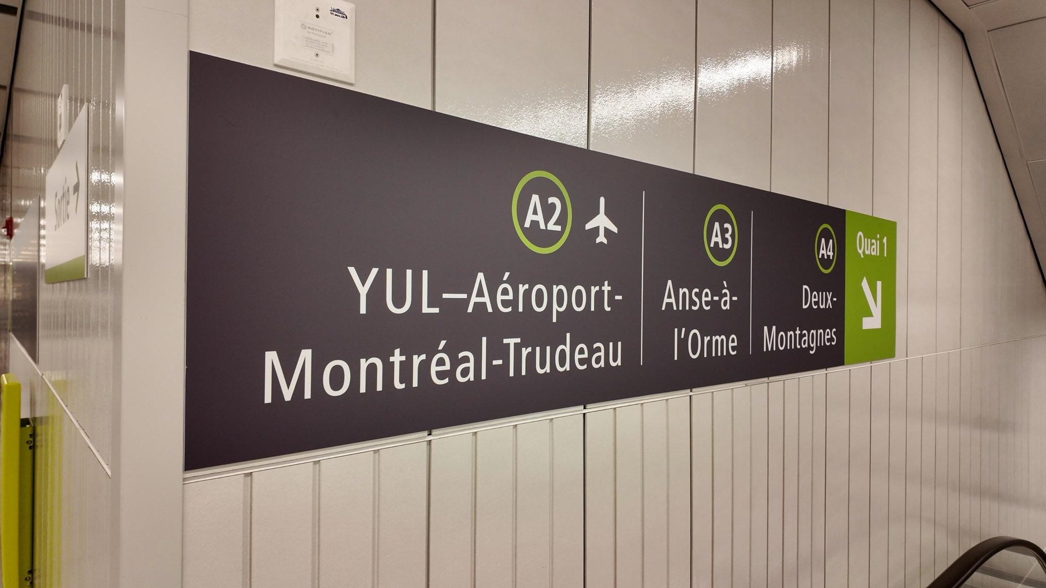 Of course, with it, this phase brings a lot more character and colour. The line has small river crossings on more minor bridges, frankly almost bucolic environments to pass through every few minutes, the first elevated stations and embankment sections on the system, and two new underground stations, which manage to both feel like they could be in Tokyo or Paris, but also distinctly Montreal — the giant mosaics and exposed natural rock walls at Edouard-Montpetit in particular are amazing, though I imagine some work is going to be needed pretty quickly, since the station is connected to the metro via just two swing doors, and the elevator system is in a bit of a state of chaos without logical and orderly dispatching (there are screens so one can hope they are planning something more ordered than “run to the first opening elevator doors”). At Cote-de-Liesse, there is even a second southbound REM platform, which should allow another train to queue up and handle the surge of passengers when the huge EXO trains on the Mascouche line pull in and unload.